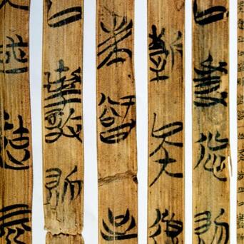 图1到图9,都是我国书法史上的各种墨迹资料,包括楚简、秦简、汉简、写经墨迹以及行书、草书等等。